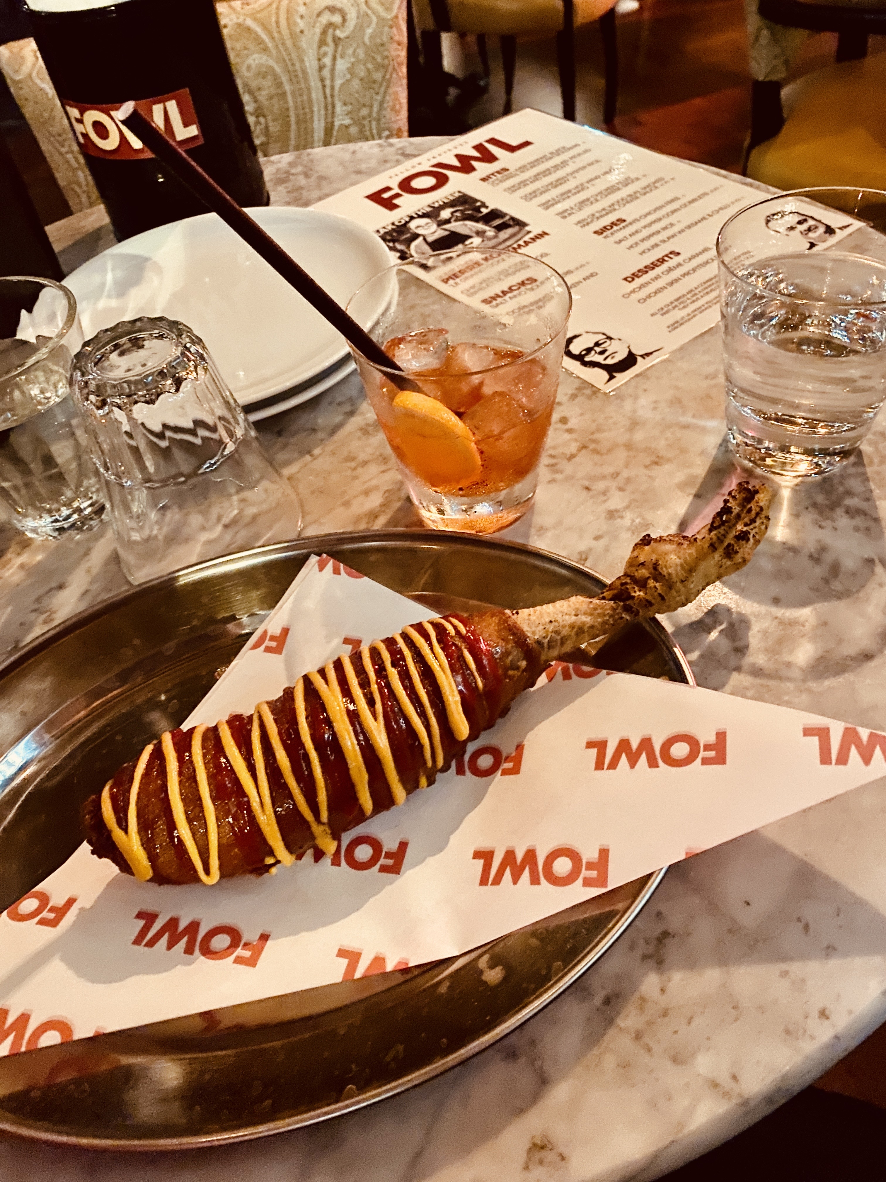 And, the most succulent wings: ‘Like, how many times did they deep fry these?!’ I said to my companion, sauce and crispyness oozing from the morsel heading for my mouth. ‘I don’t know’ he replied, ‘But after Pierre’s Chicken Leg Corn Dog (Pierre Koffman – guest chef this month) and those Fig Negronis, I think I’m almost done.’