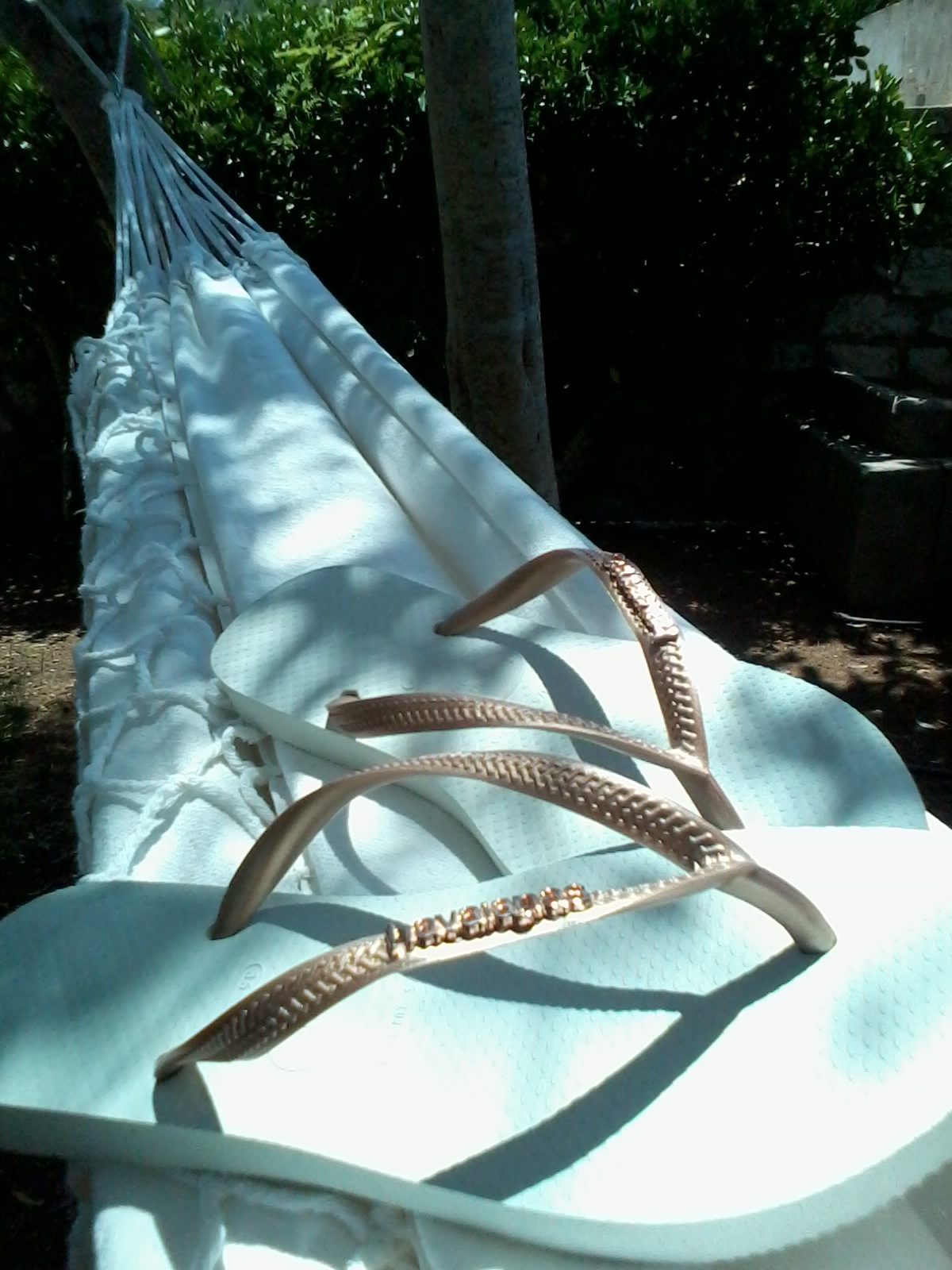 We looked at the potential embellishments on offer; miniature pin flags, baby flip flops and Swarovski crystals. “Don’t they tear the rubber though – if you stick that great big pin in?” “No, not at all” he replied. He showed me one he’d made earlier and then reiterated “Havianas wouldn’t be doing this all around the world if it was going to damage the product.”
