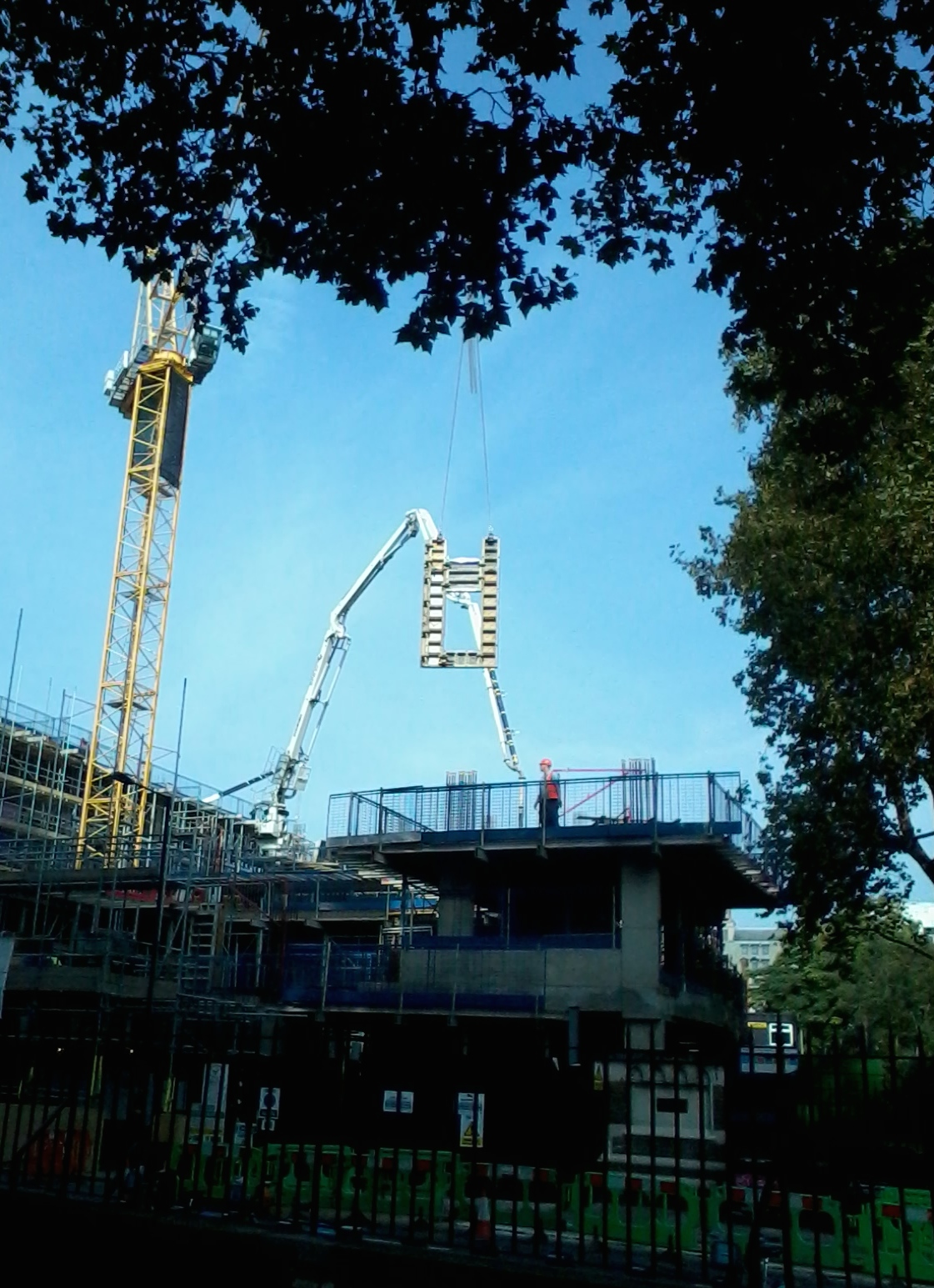 He started the engine, ready to move off.  I waved and walked on, past a crane dangling what looked like a picture frame high above me in the blue sky. My brothers’ saying popped into my head: “Without trucks, baby, you got nothin.’”2014-09-22 11.15.51