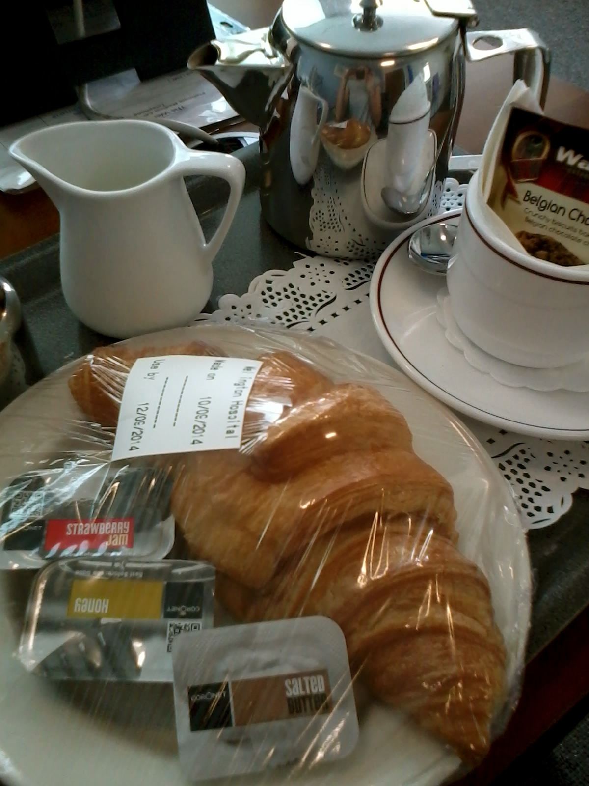 “No” he replied smiling and looking at me: “Would you, um, would you like something?” “Oh! I’d love a coffee” I said. How fabulous!” “A croissant as well?” “Sure, why not!”